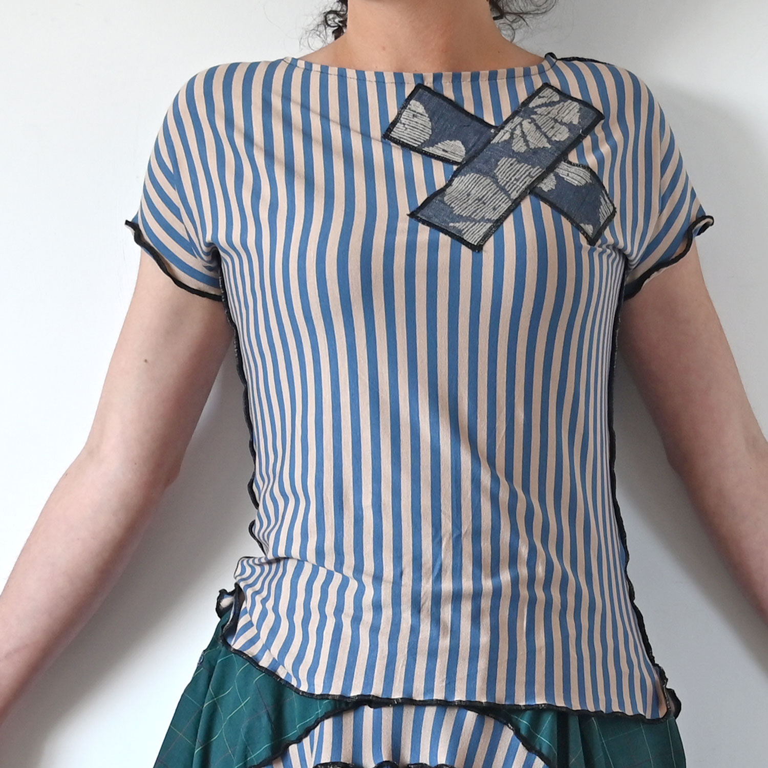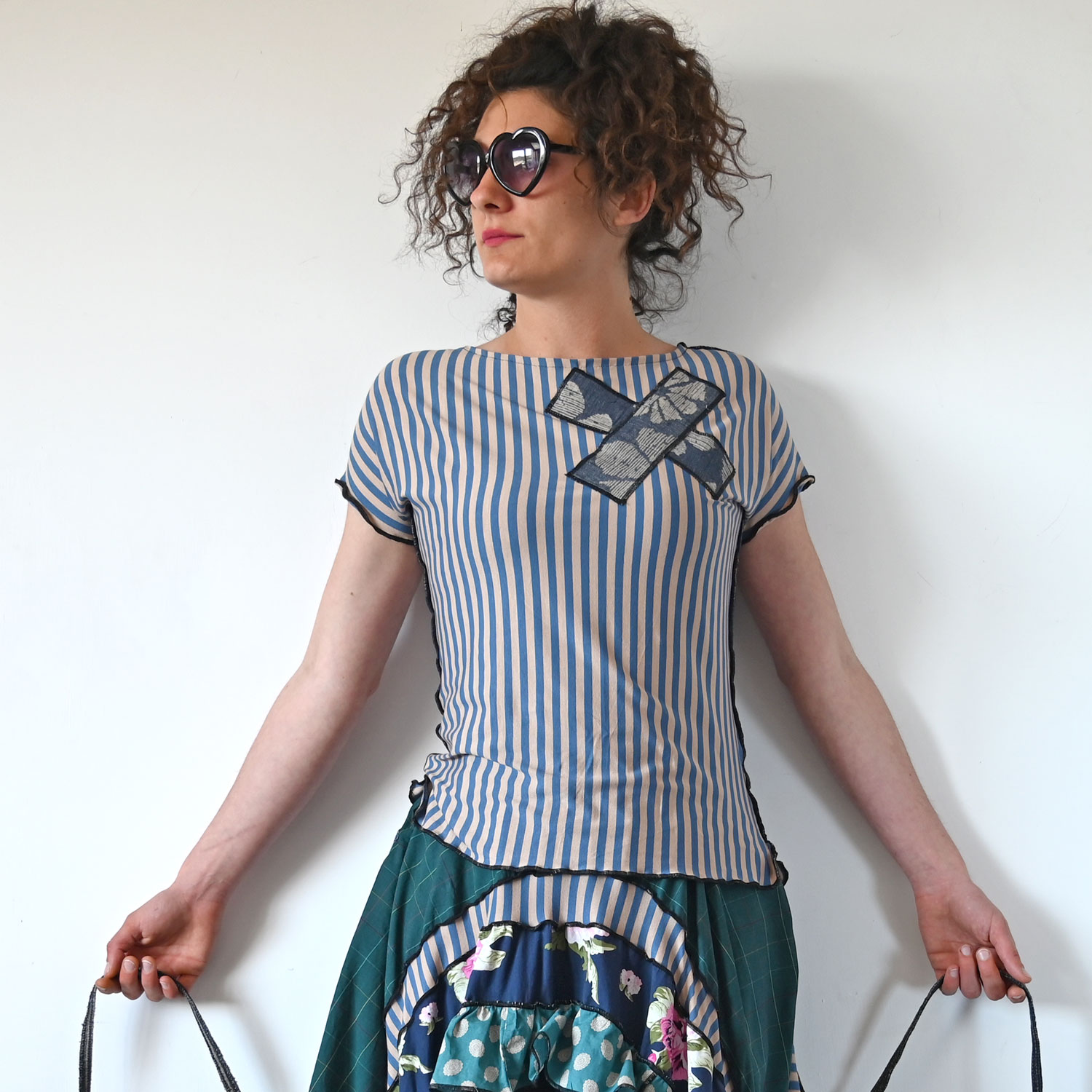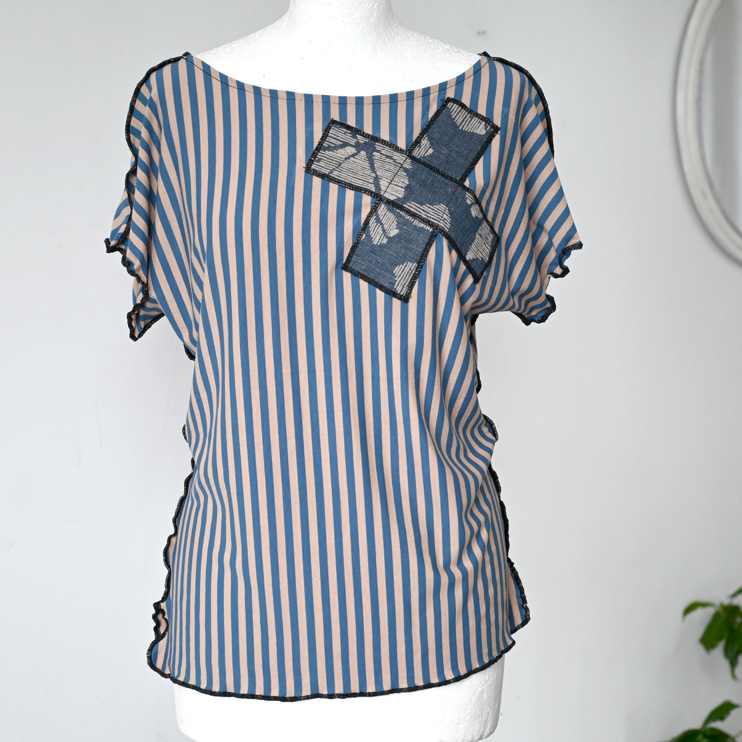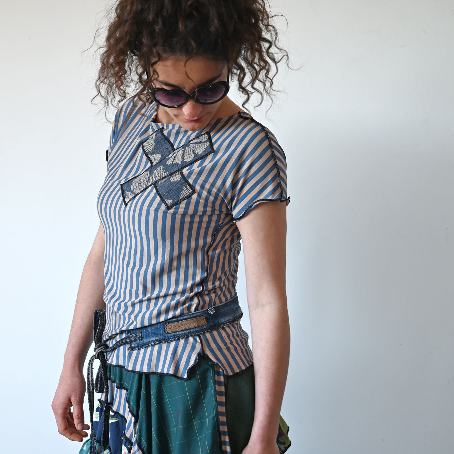 The shirt is about 60 cm long, casual cut, and has slits on the sides.